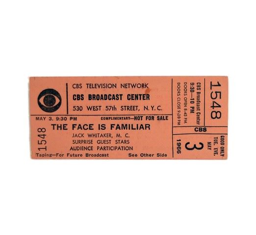Cbs Game Show Ticket The Face Is Familiar 1966